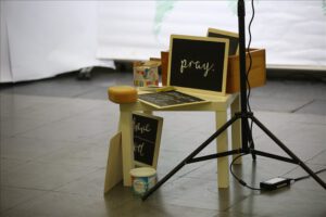 Bei der diesjährigen JuMiKo (Jugend-Missions-Konferenz) in Stuttgart wurde erstmalig ein Raum des Gebets geschaffen, wo Konferenzteilnehmer vorbeikommen konnten, um mit Jemandem zu sprechen und vor allem zu beten. Vertreter verschiedener Missionswerke hatten sich für einzelne Zeiteinheiten zur Verfügung gestellt, um dann Ratsuchende zu empfangen und für deren Anliegen zu beten. Das Angebot wurde sehr gut angenommen.
